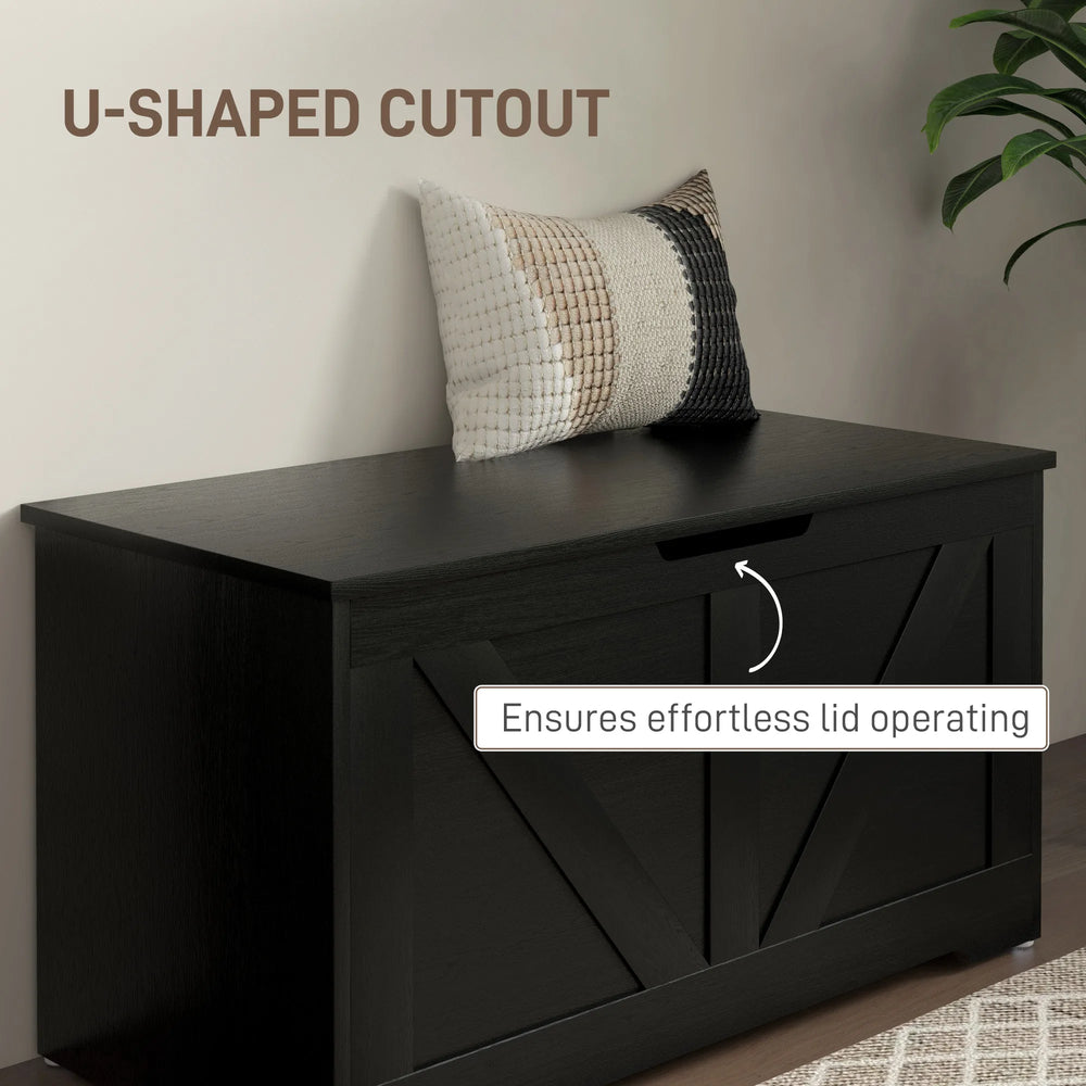HOMCOM 100L Home Storage Box, with Safety Hinges - Black Wood-Effect
