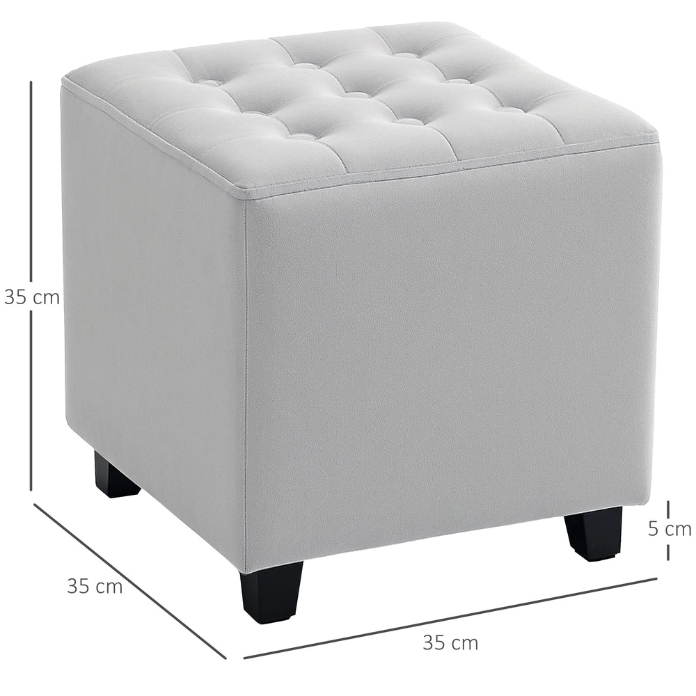HOMCOM Velvet-Feel Square Ottoman - Light Grey