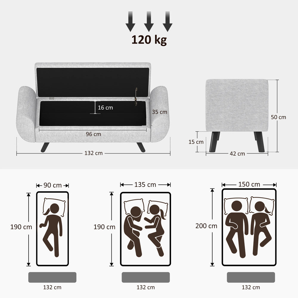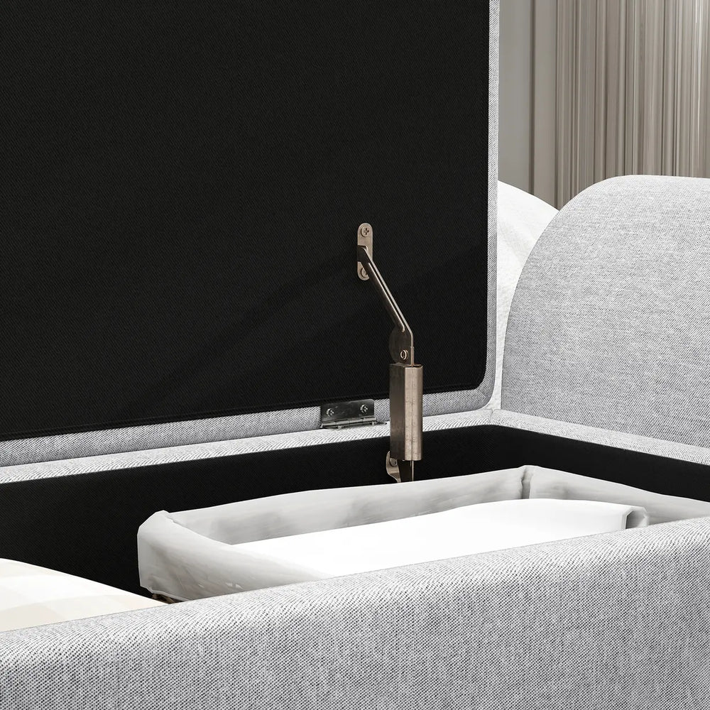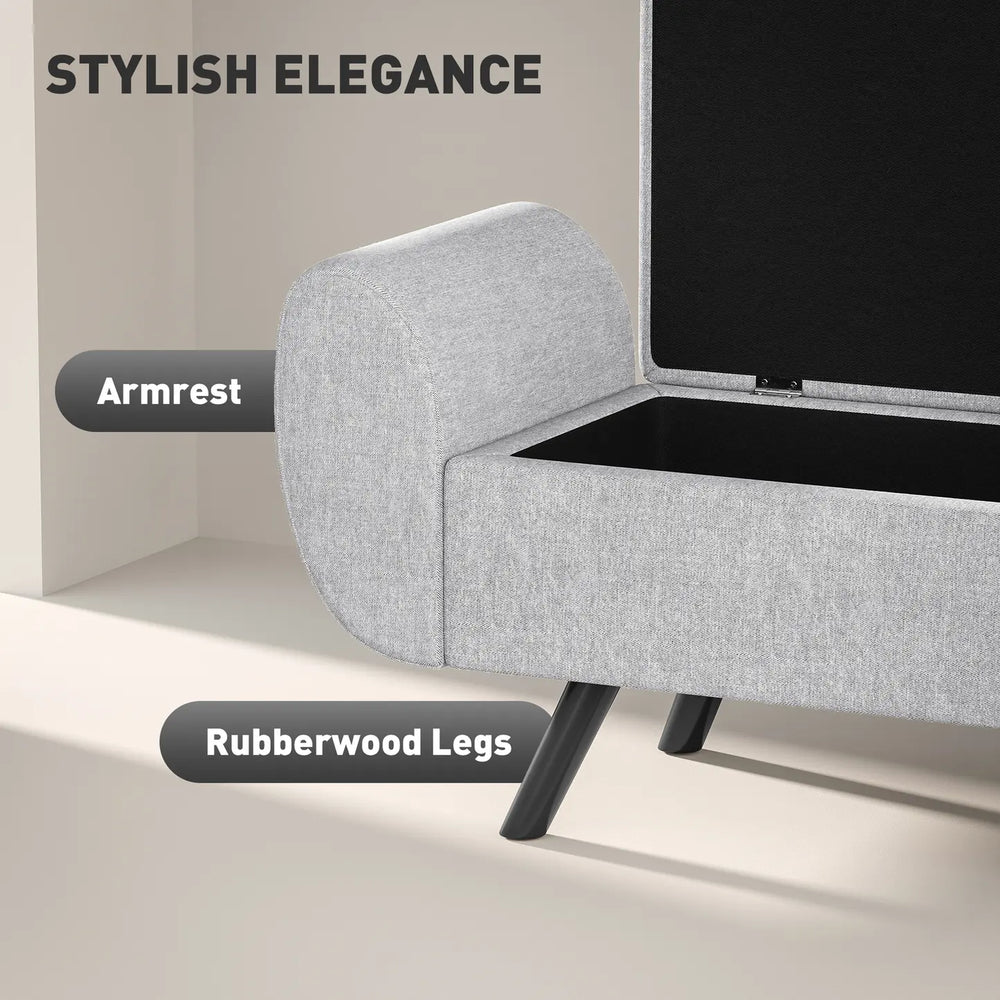HOMCOM Storage Ottoman with Armrest, Upholstered Linen Storage Bench, Window Seat with Rubberwood Legs, Footstool for Bedroom Living Room, Hallway, Light Grey