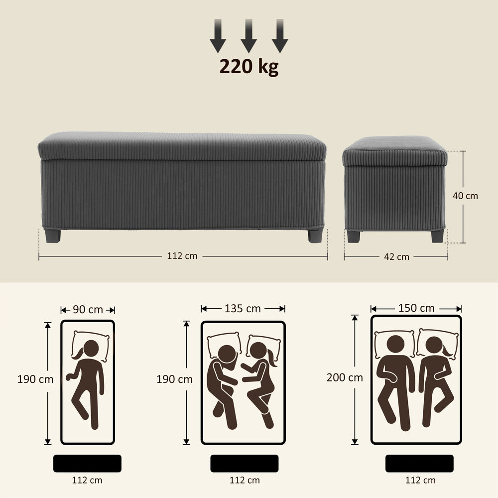 HOMCOM 84L Corduroy Storage Ottoman - Grey