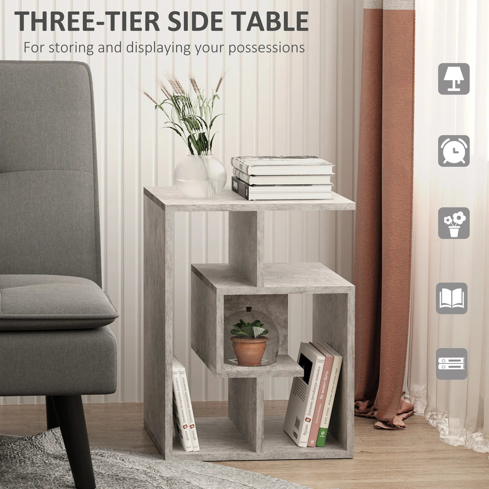 HOMCOM Side Table, 3 Tier End Table with Open Storage Shelves for Living Room, Bedroom, Set of 2, Cement Colour