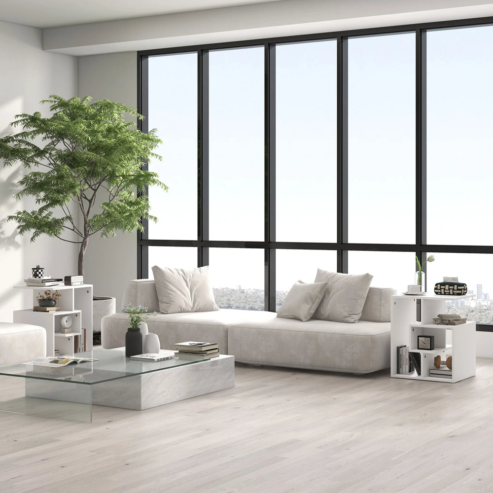 HOMCOM Side Table, 3 Tier End Table with Open Storage Shelves for Living Room, Bedroom, Set of 2, White