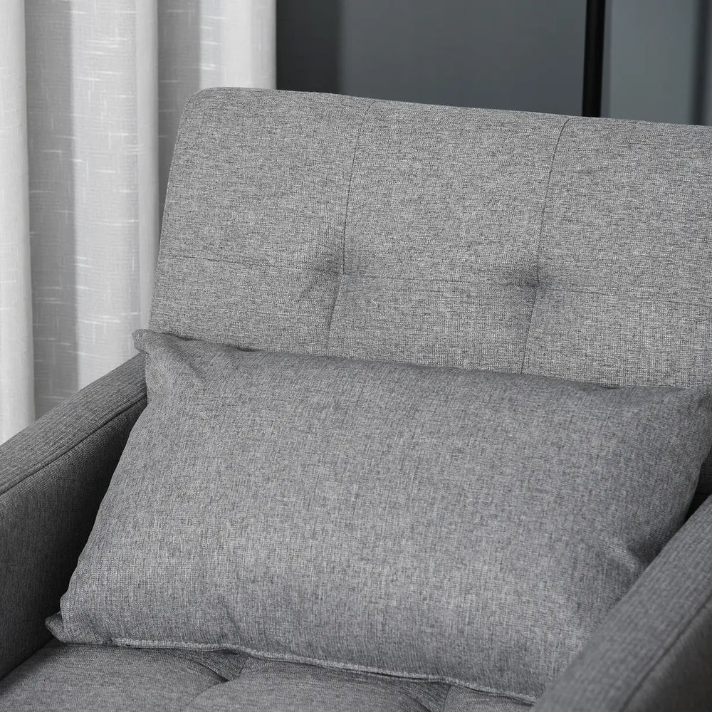 HOMCOM 3-In-1 Single Chair Bed with Adjustable Backrest, Pillow and Footrest for Living Room, Grey