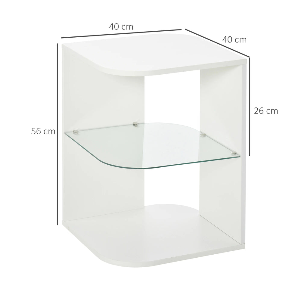 HOMCOM Modern Side Table Three Layer Bedside Table Nightstand with 2 Storage Shelves, for Living room, Bedroom, White
