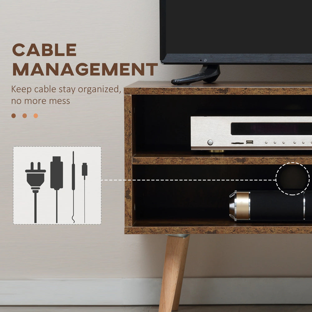 - RETRO LOOK: TV table is adorned with a two-tone brown wood effect - creating a vintage vibe, a great central point for the lounge, bedroom or office space.