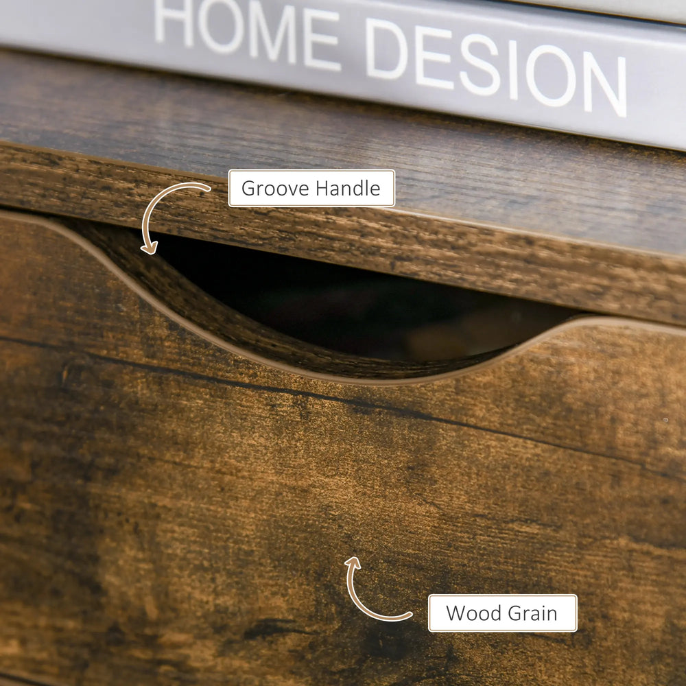 HOMCOM Industrial Side Table with Drawer, Sofa Table, Bedside Cabinet with Storage Shelf, Slim Nightstand for Living Room, Bedroom, Rustic Brown