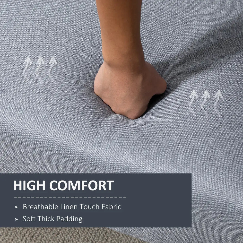 - Material: Linen (100% Polyester), Foam, Rubber Wood