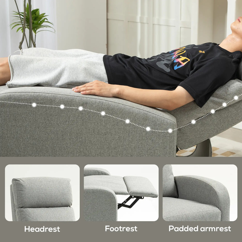 HOMCOM 135 Push Back Recliner Armchair, with Footrest - Grey