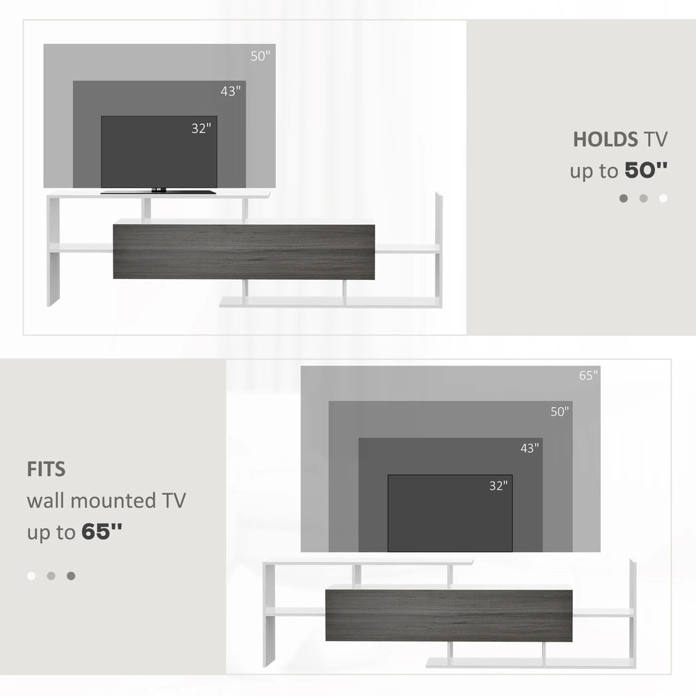 HOMCOM TV Cabinet with Wall Shelf for Wall-Mounted 65" TVs or Standing 40" TVs - White and Grey