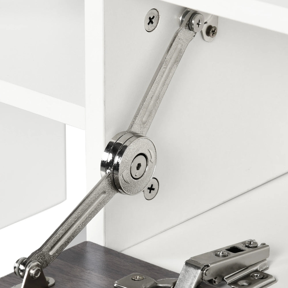 - TV table storage: It comes with a concealed cabinet (with easy flip-down door) and side shelves - plenty of room for all media essentials. Flat top is suitable for standing TVs up to 40" or wall-hanging TVs smaller than 65".