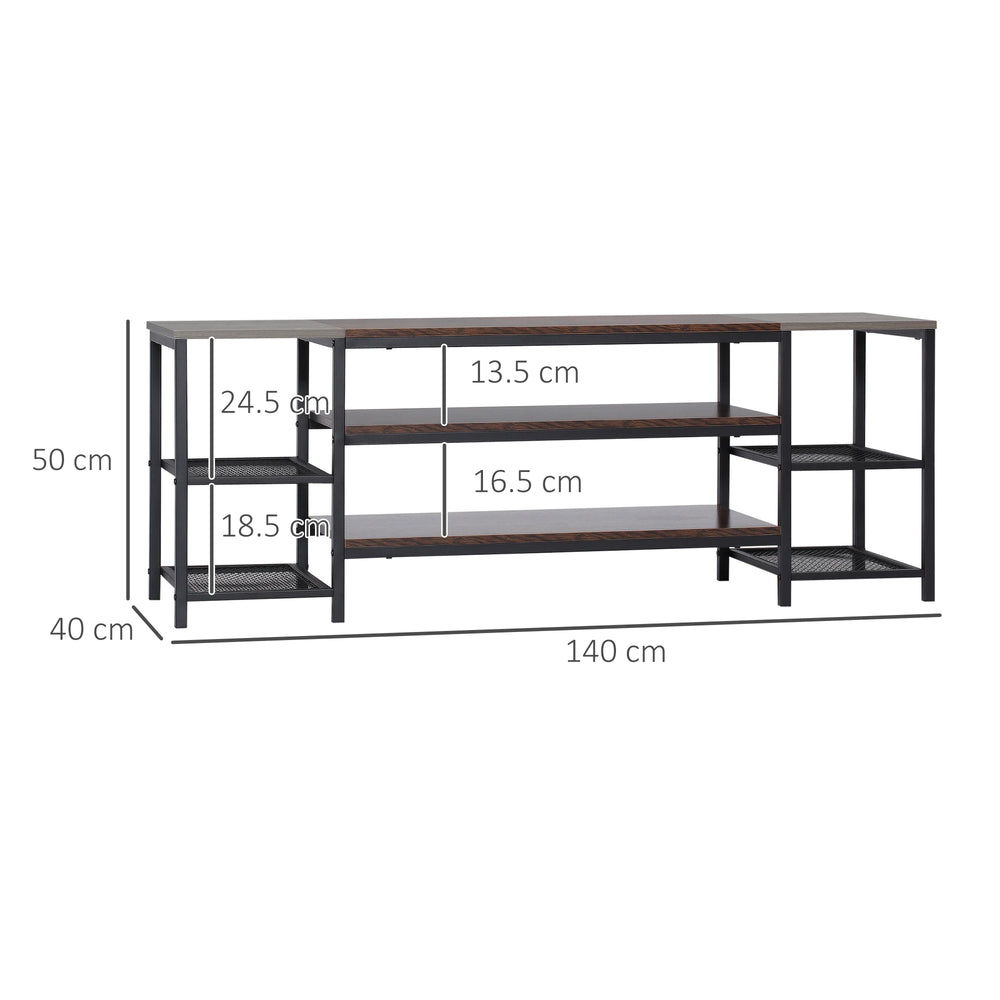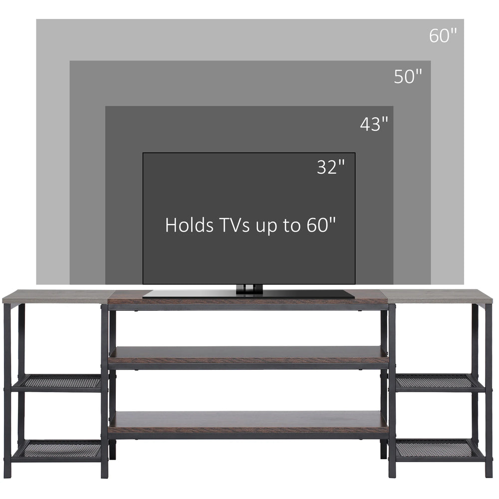 HOMCOM TV Unit Cabinet for TVs up to 60 Inches, Industrial TV Stand with Storage Shelves for Living Room, Brown and Grey