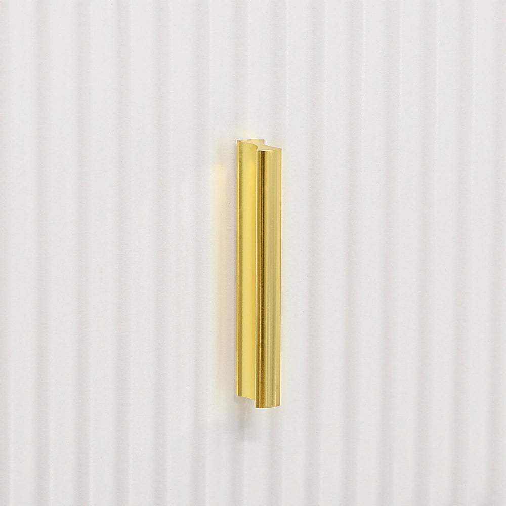 - Elegant design: Soft white colour, with ridged drawer fronts for a textural touch. Gold coloured handles and hairpin legs on bedroom drawers add an elegant touch.