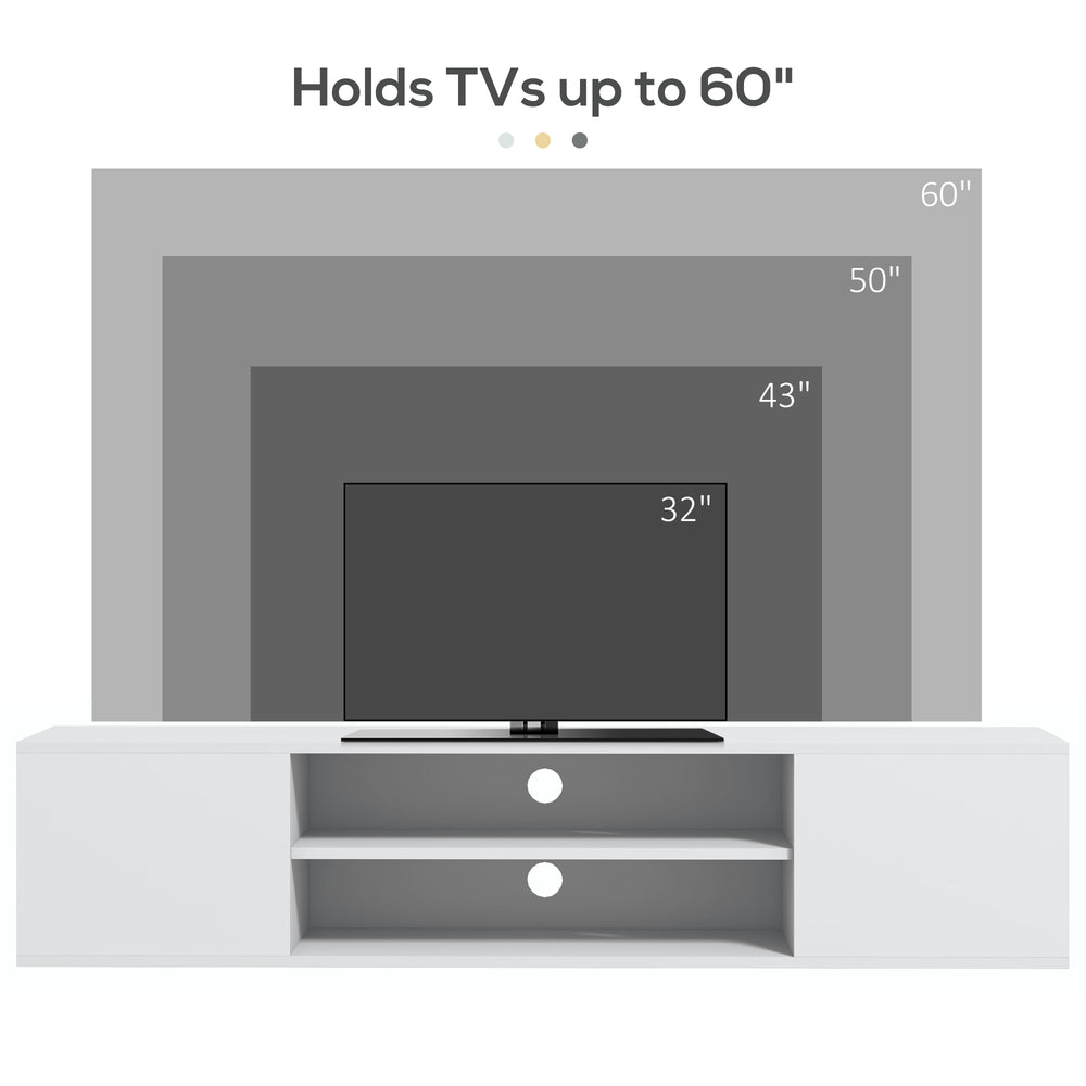 HOMCOM Floating TV Stand Cabinet for TVs up to 60", Wall Mounted TV Unit with Open Shelf, Storage Cupboards and Cable Management for Living Room, White