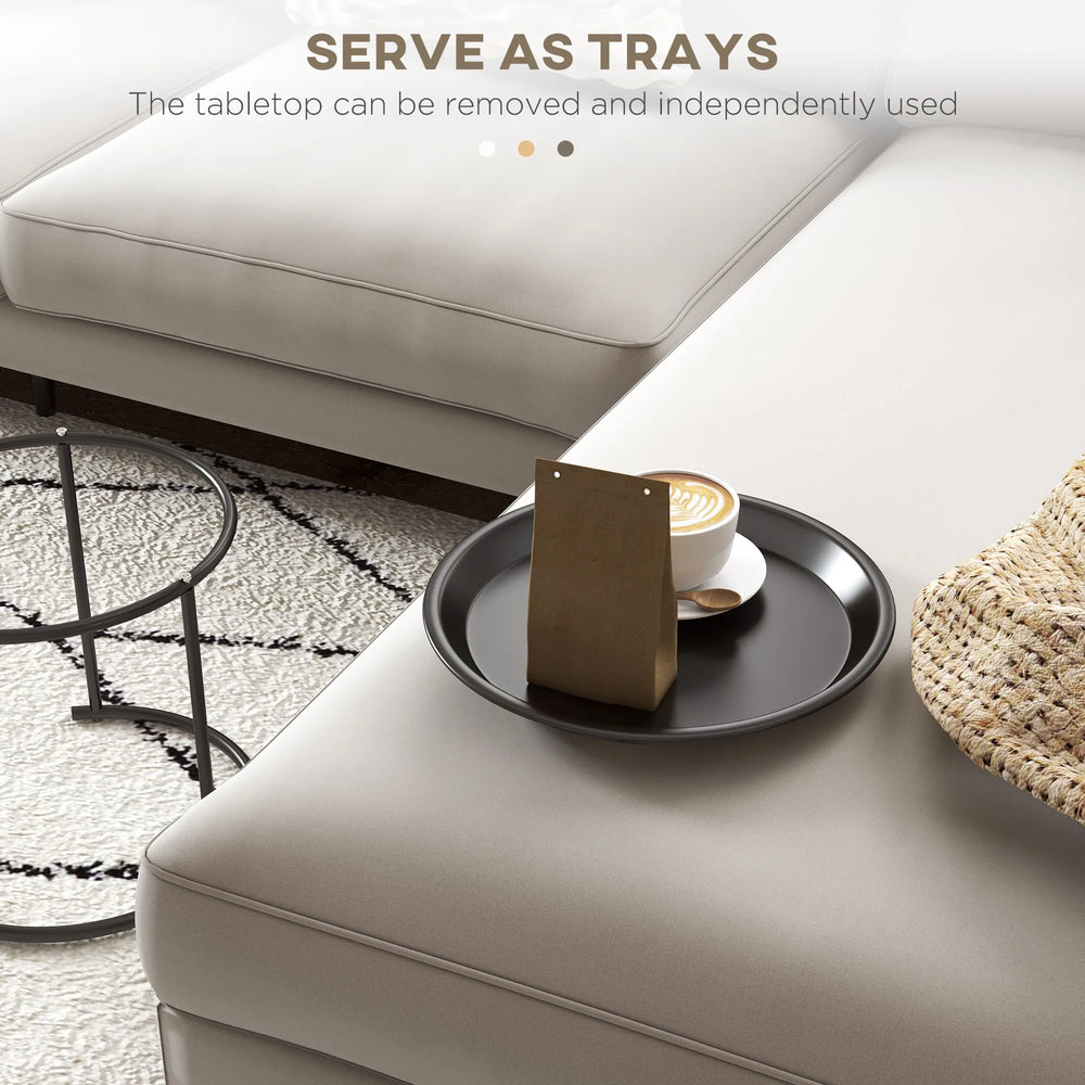 HOMCOM Nesting Tables Set of 2, Side End Table with Removable Tabletop Tray and Steel Frame for Living Room, Bedroom, Black