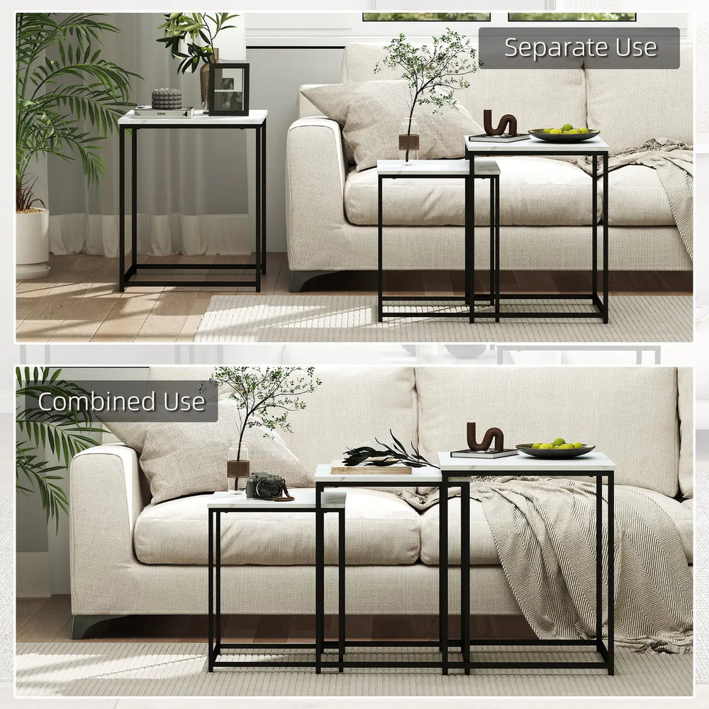 HOMCOM Three Nest of Tables, Marble Effect Finish