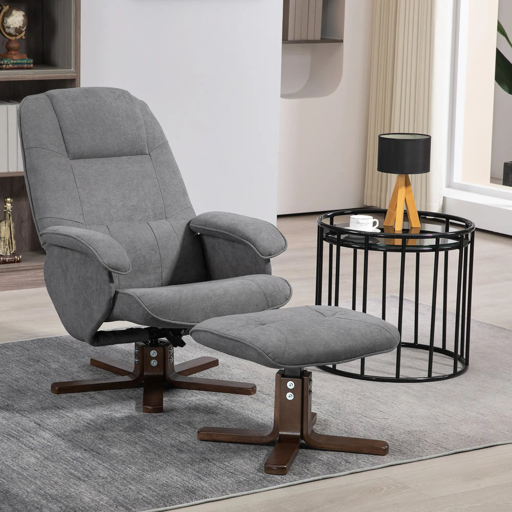 HOMCOM Linen Swivel Recliner Chair with Footstool, Upholstered Reclining Armchair with Wooden Base for Living Room, Grey is backordered and will ship as soon as it is back in stock.
