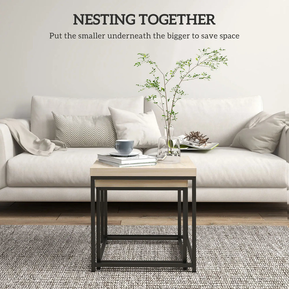 HOMCOM Coffee Table Set of 2, Nest of Tables with 3.5cm Thick Tabletop, Oak