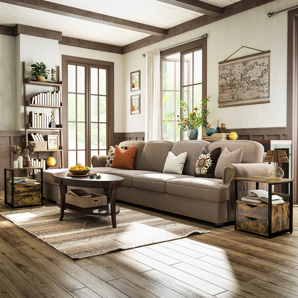 HOMCOM Industrial Side Table Set of 2, Sofa Table with Drawer, Bedside Cabinet with Storage Shelf, Slim Nightstand for Living Room, Bedroom, Rustic Brown is backordered and will ship as soon as it is back in stock.