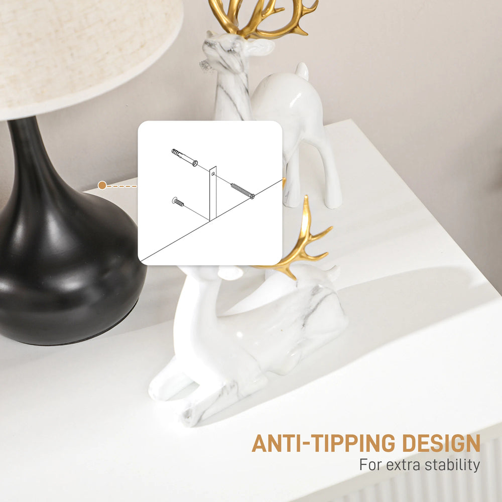 Add a soft touch of elegant texture into the bedroom and beyond, thanks to this HOMCOM dresser. The soft white colour comes with ridged drawer fronts, with gold coloured handles and hairpin legs - this is a beautiful design! With two drawers there's plenty of storage for clothing and more. These white drawers made from a particle board and MDF blend for durability.