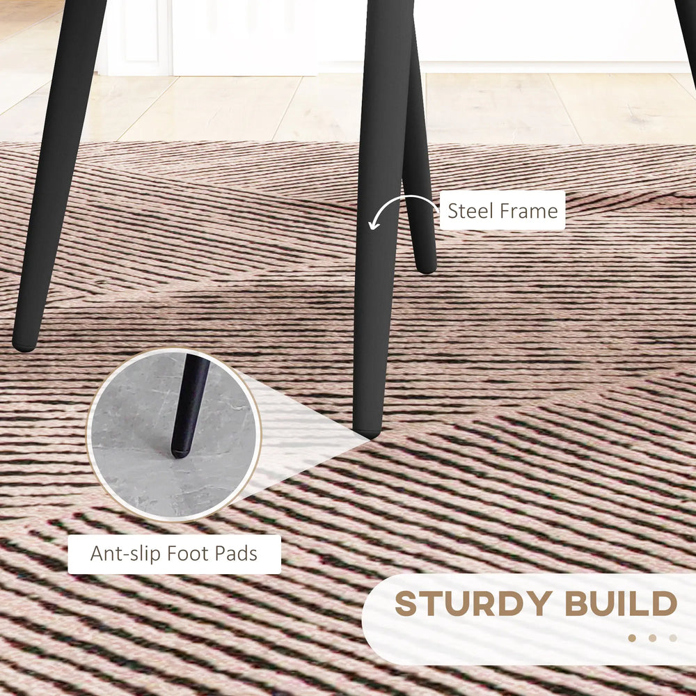Relaxed style - two times. These set of two HOMCOM dining chairs bring effortless matching style into your home. Armless design and slanted back make it a pleasure to sit on. The foam padding for comfort, with velvet-feel upholstery soft on the skin. Powder coated steel legs for strong support, complete with adjustable foot pads.