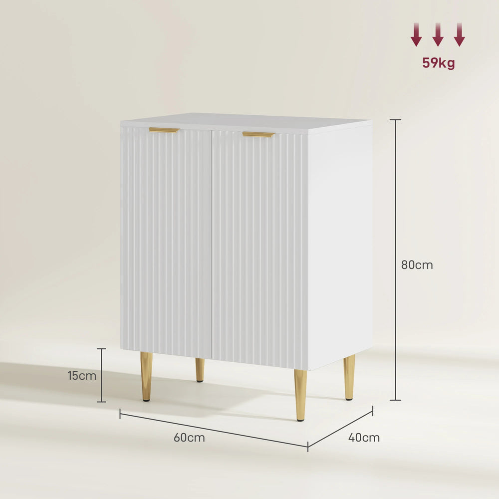 - Robust: Made from MDF, sideboard storage cabinet is a robust piece, suitable for everyday use. Metal legs with adjustable feet ensure a strong, supportive base.