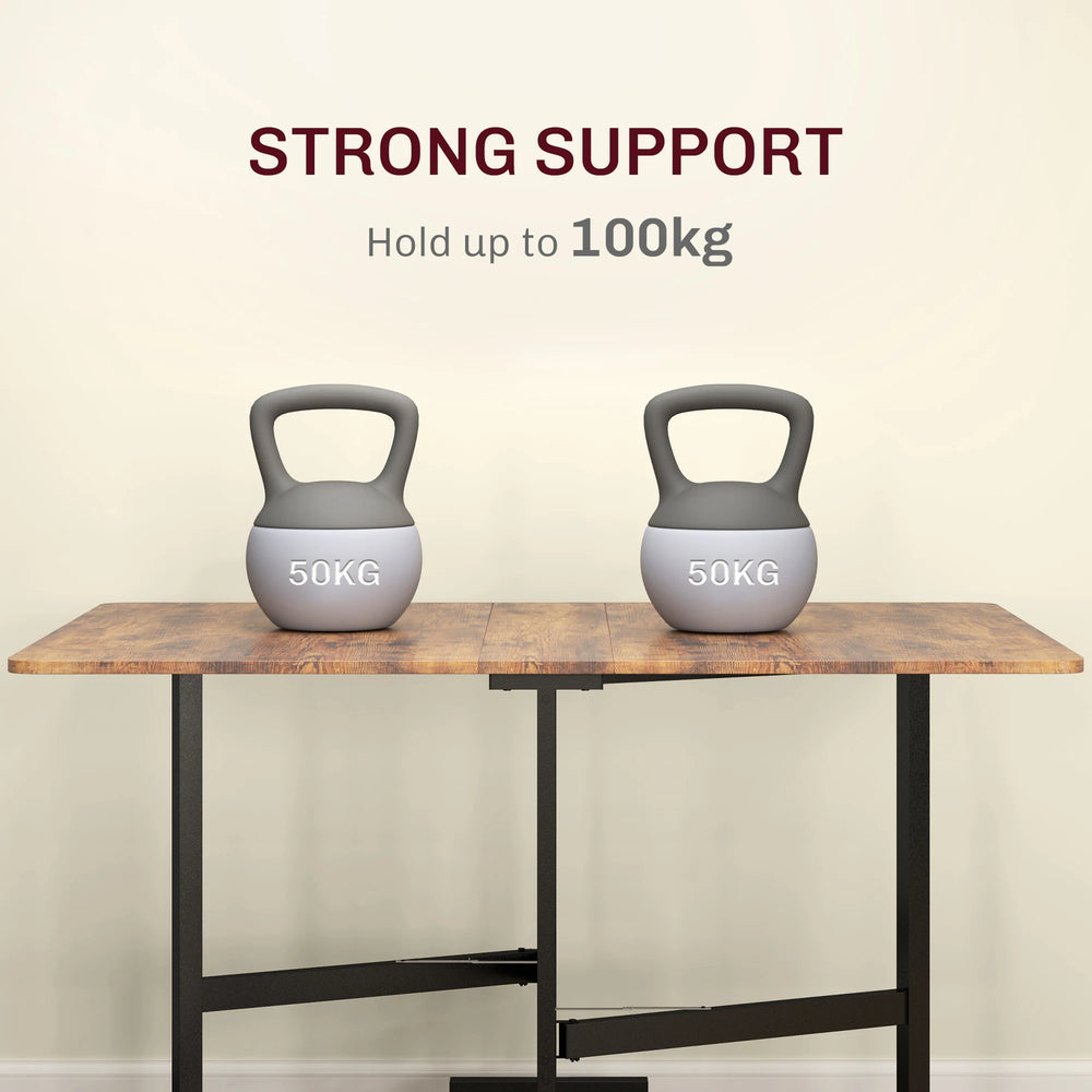 More people round to dinner made easy with this HOMCOM drop leaf table. When folded to 26cm, it doesn't take much space - yet holds maximum six people: spacious enough for you and friends. Featuring robust steel legs and smooth wheels with brakes, this small folding table combines flexibility with ease of movement, making it a superb addition to any small kitchen or dining area.