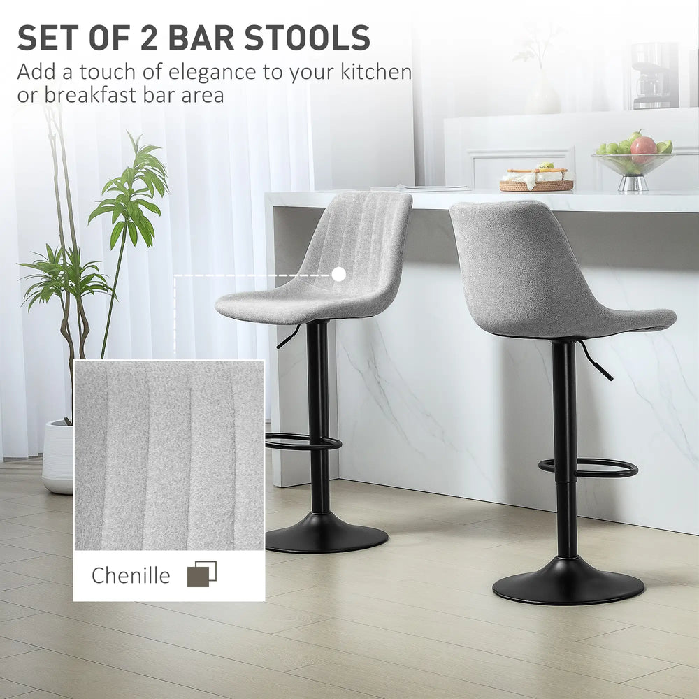 Both these HOMCOM breakfast bar stools are adjustable in height, with the 360 tub seat - easy and comfortable for your kitchen and beyond. The powder coated steel frame means a strong core., with a round base for balance; the rubber anti-slip ring gently protects the floor. Comes in a set of two kitchen stools for an easy matching look.
