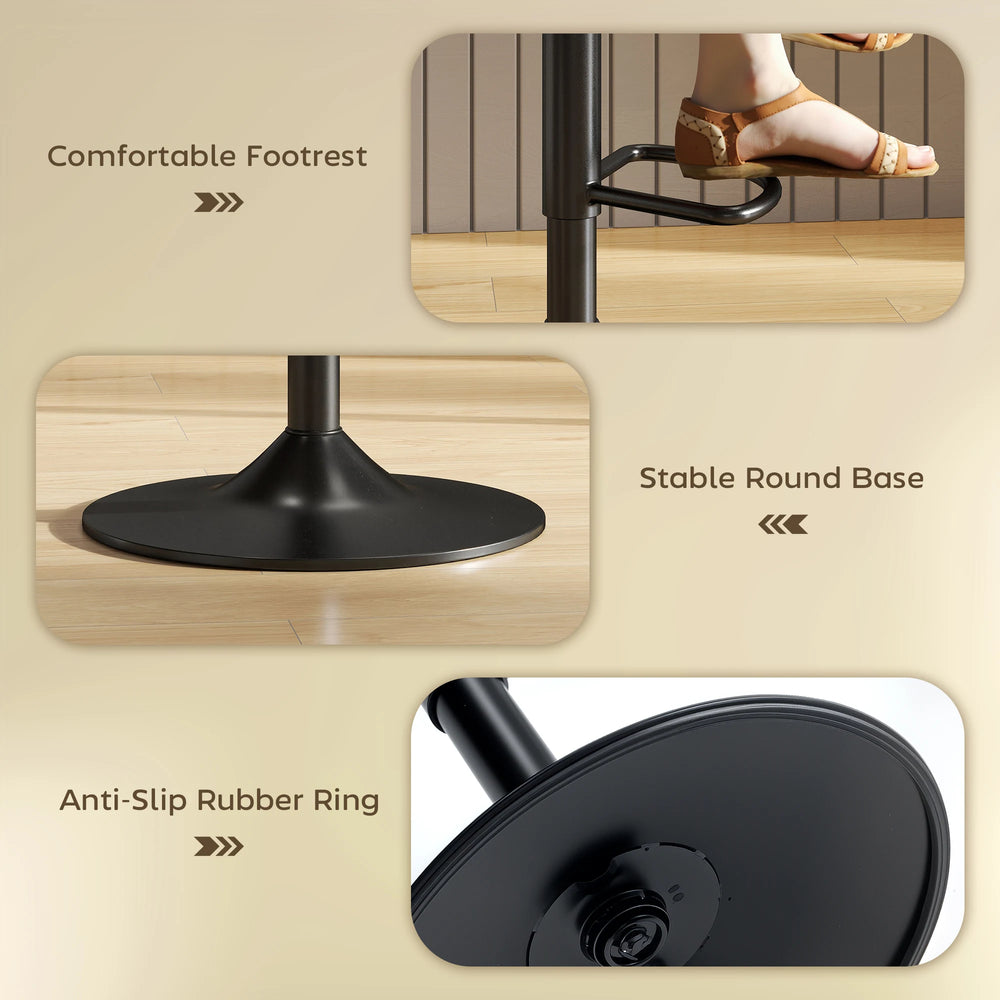 - Swivelling steel frame: Powder coated metal for extra strength - a strong and supportive core for this adjustable stool set. 360 swivel motion moves freely with your body.