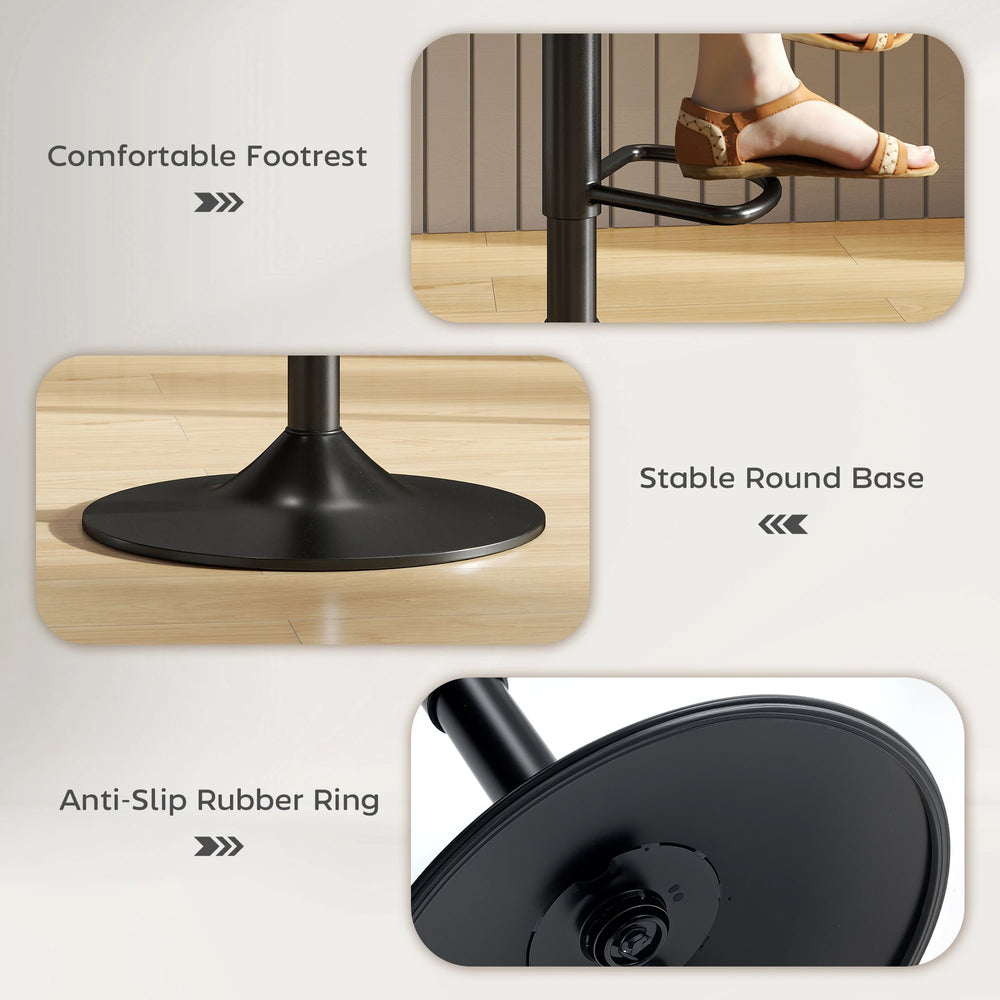 - Swivelling steel frame: Powder coated metal for extra strength - a strong and supportive core for this adjustable stool set. 360 swivel motion moves freely with your body.