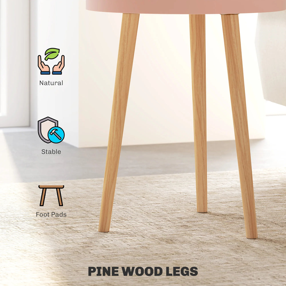 - Wooden legs: A strong and supportive bottom for this side table with storage - angled outwards to promote extra balance. Foot pads help protect the floor.