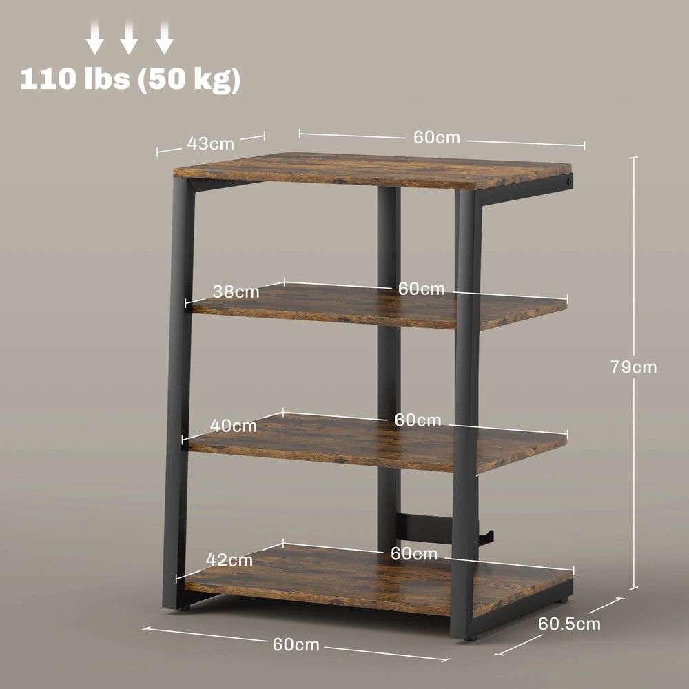 HOMCOM HiFi Stand, with Four Storage Shelves - Rustic Brown