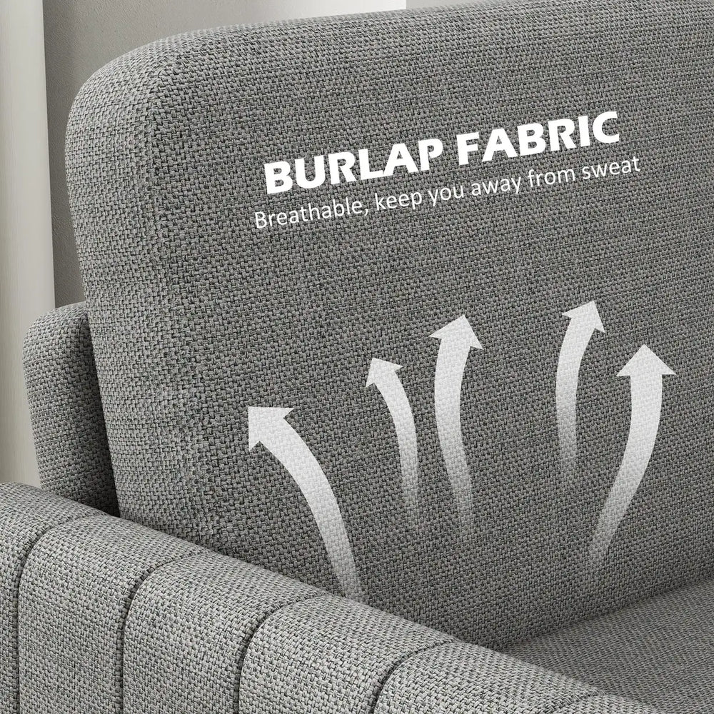 - Linen-feel fabric upholstery: A smooth, soft finish for this settee. Side line indents on both arms add a subtle point of difference.