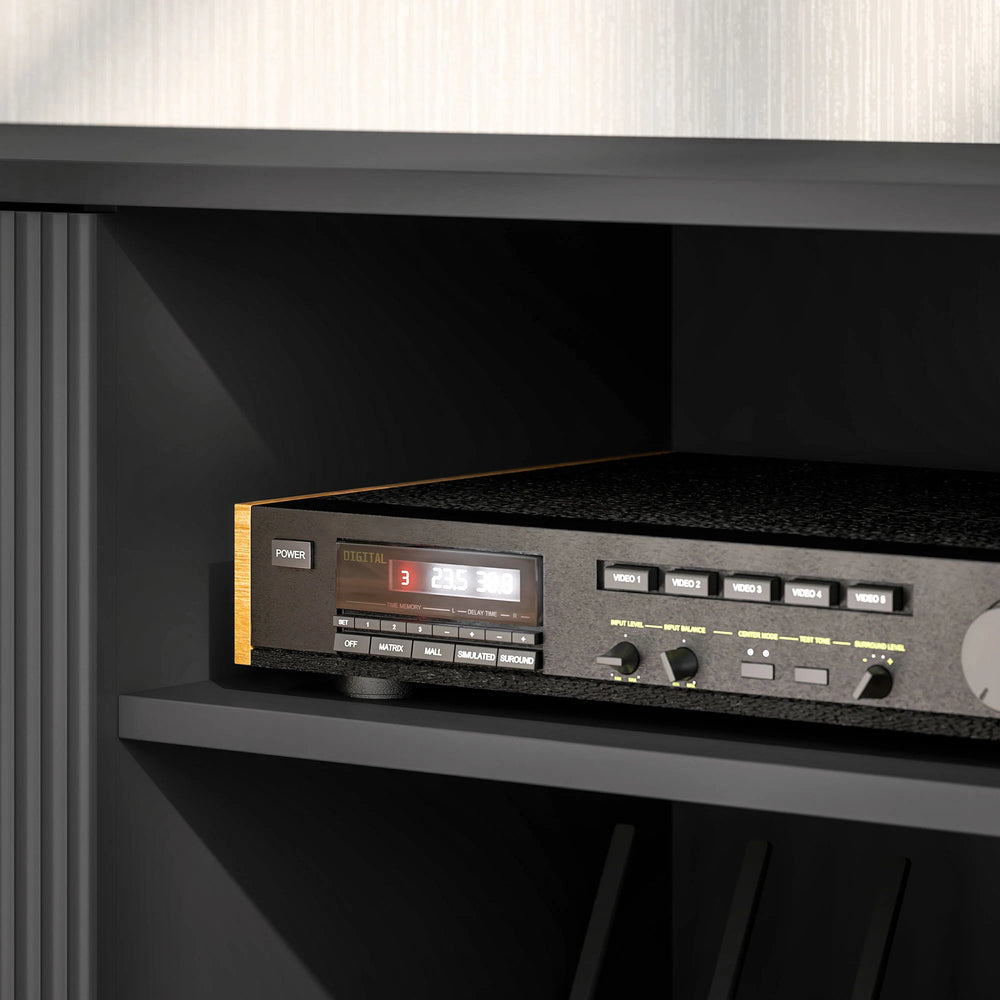 - Lots of storage: Featuring two open compartments and two 2-tier cabinets with doors, this media console provides plenty of space to store your devices and accessories.