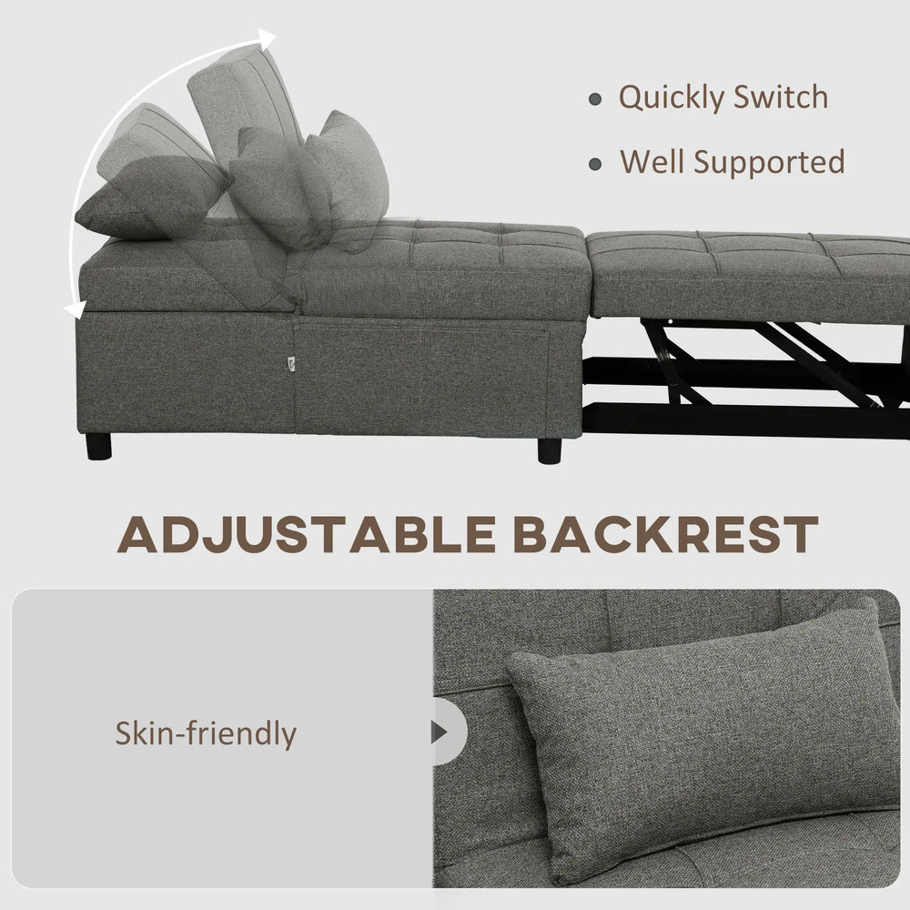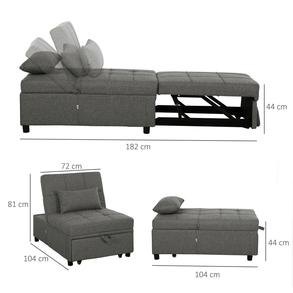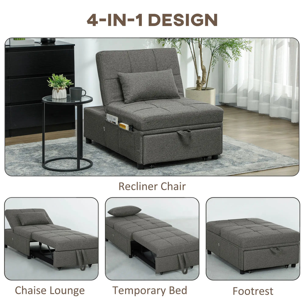 HOMCOM Four-In-One Single Sleeper Chair - Dark Grey