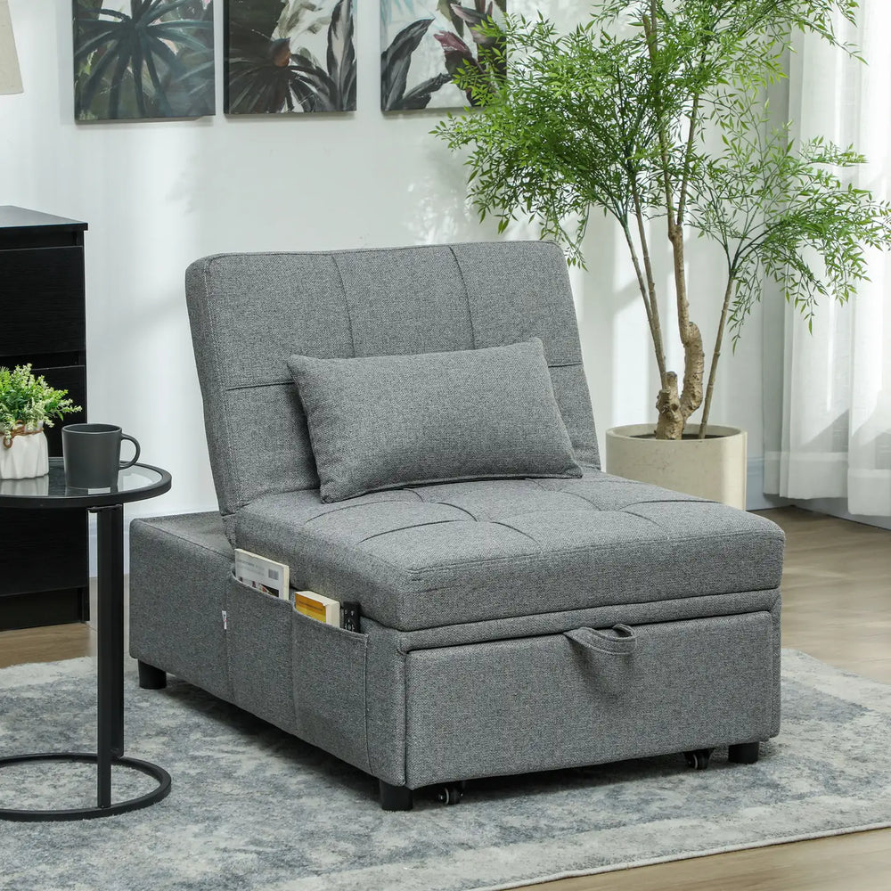 HOMCOM Four-In-One Single Sleeper Chair - Dark Grey