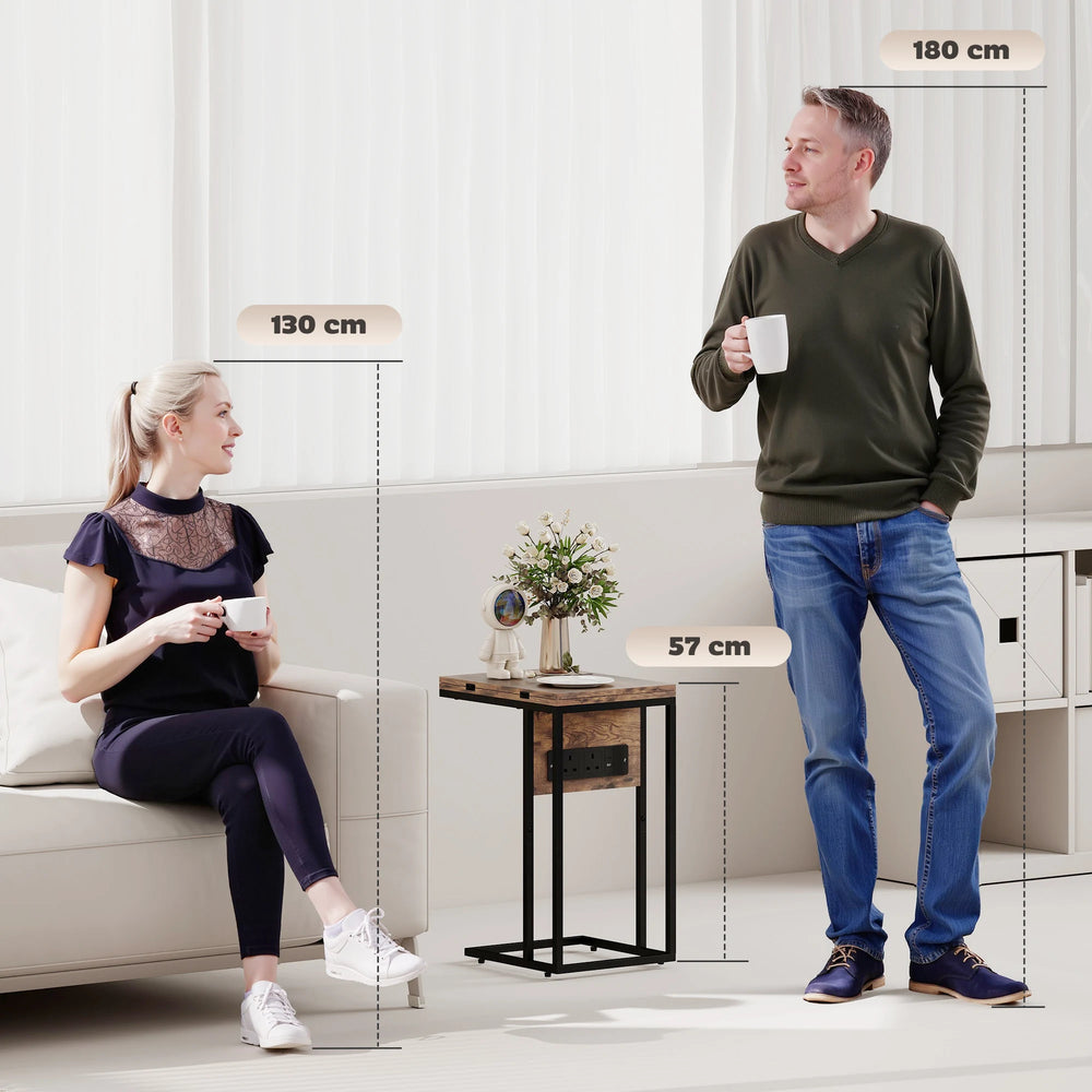 Transform your living space with this industrial side table from HOMCOM, complete with a charging station and a foldable tabletop that fits seamlessly into any room. Slide this C-shaped end table effortlessly under your sofa or bed, great for those snug nooks. Whether you need a convenient bedside table, a handy sofa sidekick, or an efficient workspace, this small table adapts to your lifestyle with style and functionality.