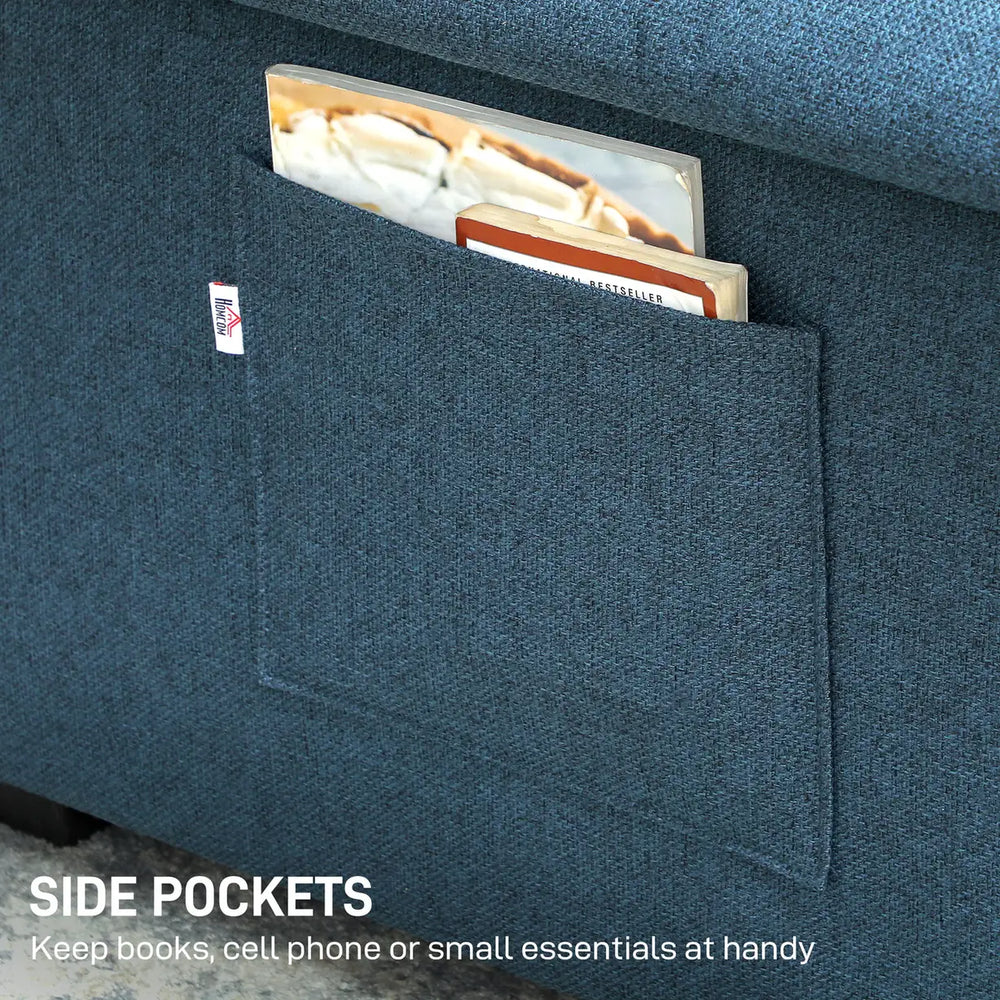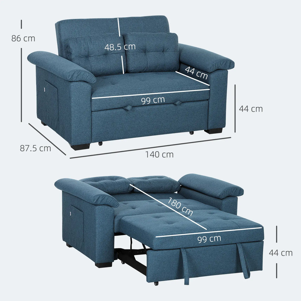 HOMCOM Pull Out Sofa Bed, Fabric 2 Seater Click Clack Sofa Bed Settee with 2 Pocket Springs, Convertible Sofa Couch with Pillows and Side Pockets for Living Room, Home Office, Blue is backordered and will ship as soon as it is back in stock.