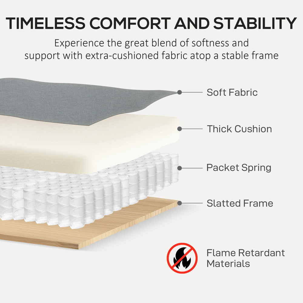 Sink into the sumptuous depths of the HOMCOM Three Seater Sofa, where comfort meets chic modernity. This fabric couch boasts the packet spring design for superb stretchiness and thick, luxurious padding enveloped in a breathable linen-feel fabric. It's not just a seat; it's your new favourite relaxation spot, designed to support any lounging style with its spacious, 50 cm deep seating.
