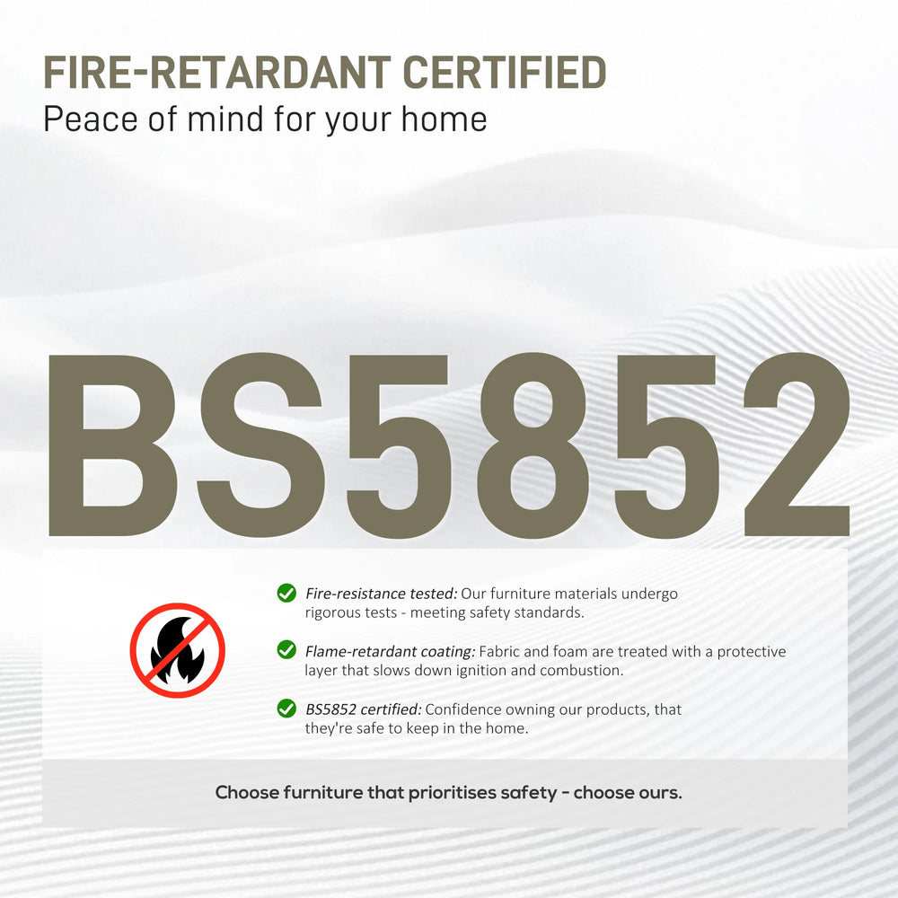 - Dimensions: 82H x 130W x 74.5D cm. Maximum load 240 kg. Assembly required. Made of BS5852 certified flame retardant materials for safety.