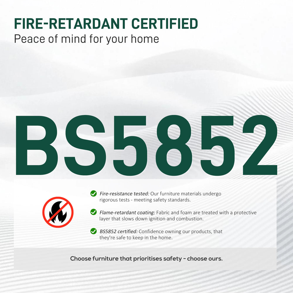 - Dimensions: 82H x 130W x 74.5D cm. Maximum load 240 kg. Assembly required. Made of BS5852 certified flame retardant materials for safety.