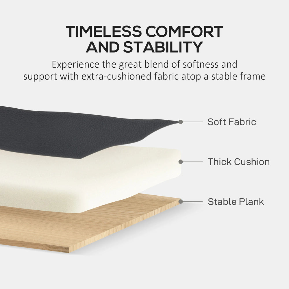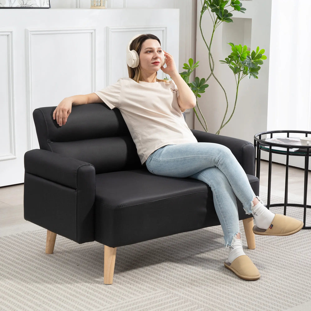 Sink into the plush comfort of the HOMCOM loveseat sofa, featuring thick doll cotton padding in seat and back. Perfectly compact, this faux leather sofa fits snugly into any small space of your living room or bedroom, with a footprint under 1 m2, adding a touch of modern chic without overwhelming the space. Suitable for cosy evenings for two! Sit back and relax in modern comfort.