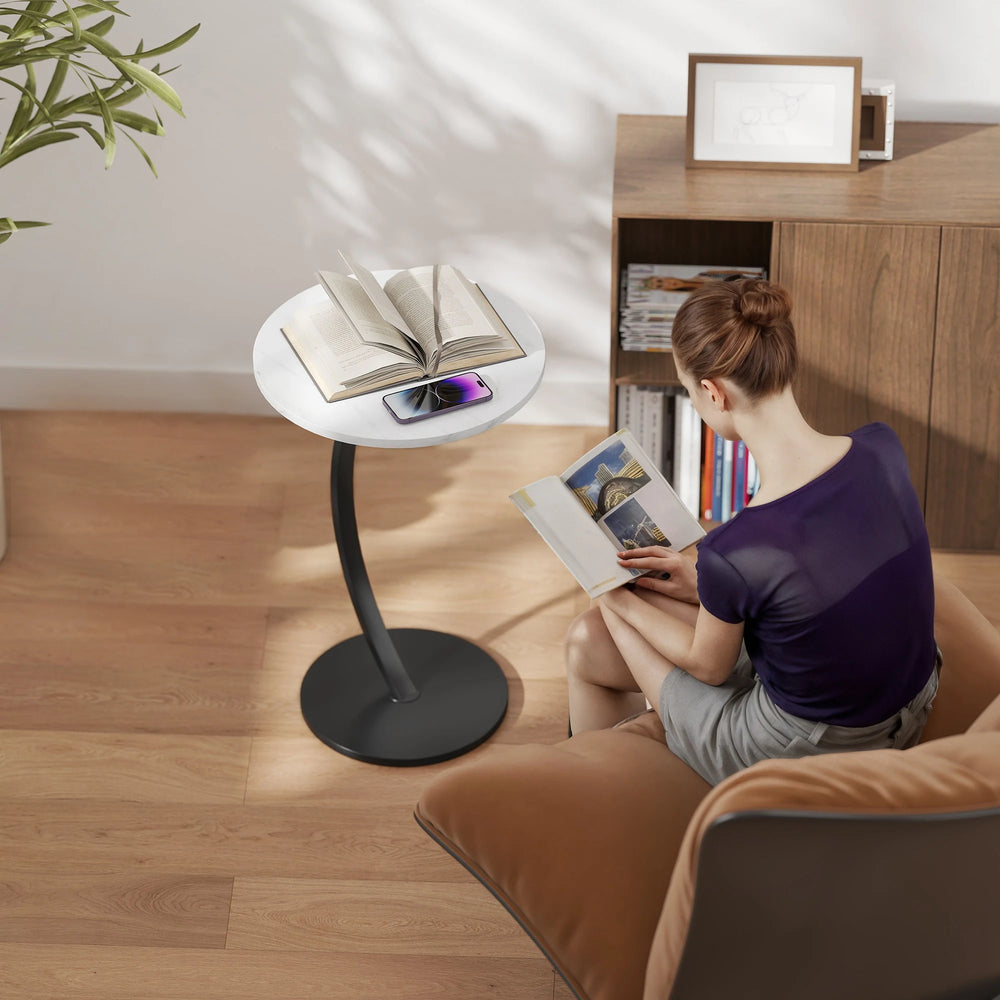 - Modern elegance: Featuring a white marble-effect tabletop and a sleek C-shaped silhouette, this small table enhances any living room, bedroom, or home office, blending effortlessly with a variety of decor styles.