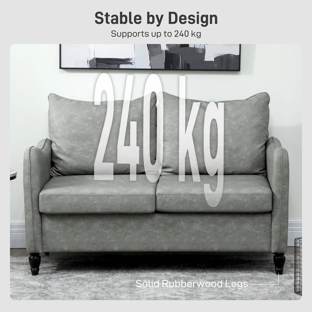 HOMCOM Faux Leather Marble-Effect Two-Seater Sofa - Grey