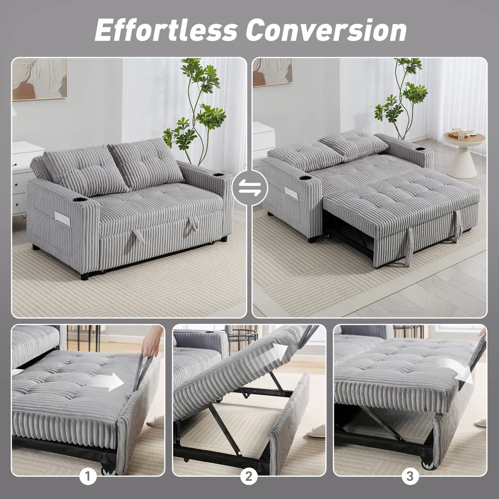 - Effortless transformation: Easily convert between 157 cm wide loveseat sofa, recliner, spacious 157W x 190D cm temporary bed with its pull-out design and wheels, suitable for hosting guests and taking great advantage of compact spaces