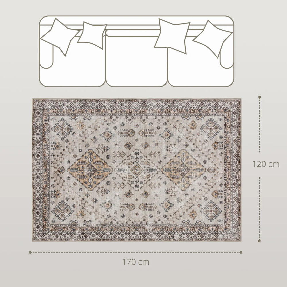 HOMCOM Vintage Area Rug, Non-Slip Washable Rug, Flannel Floor Carpet for Living Room, Bedroom, Dining Room, Home Office, 170 x 120 cm, Beige