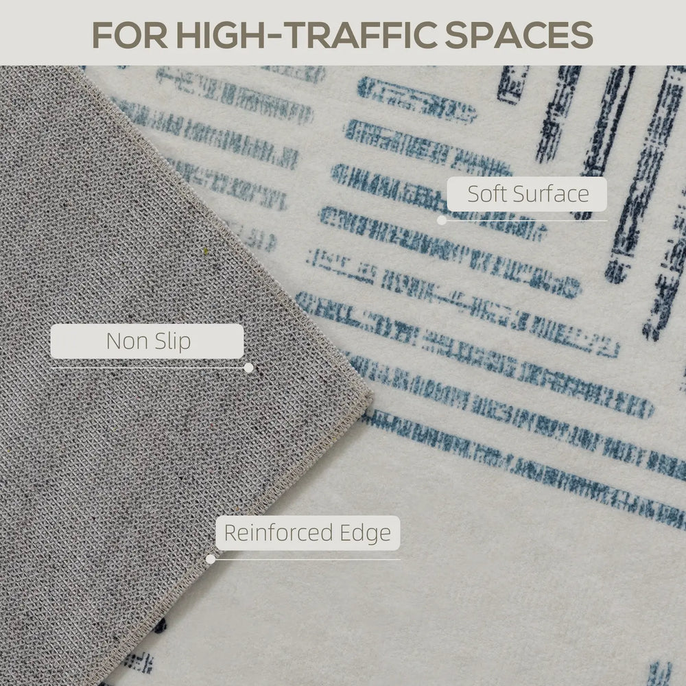 After a long day, sink your feet into the plush HOMCOM area rug, made from 100% polyester. The soothing contrast of tones and geometric lines transforms any room into a modern sanctuary. With its machine-washable design, cleaning is effortless, keeping your home beautiful with ease. Enjoy a great balance of comfort and style with this versatile rug.