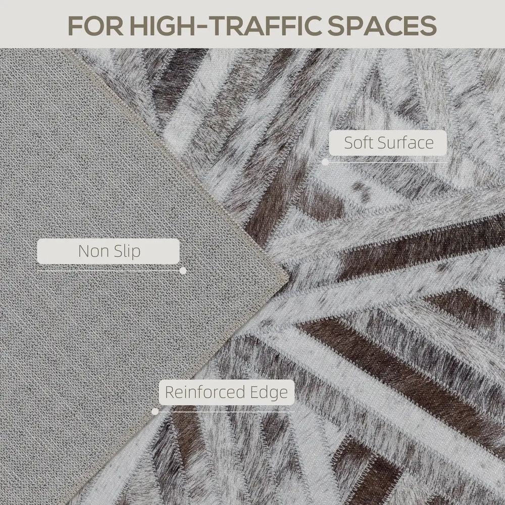 Step into style with the HOMCOM area rug, featuring a chic faux leather patchwork design and plush chenille material. This large rug for living room offers a modern touch and is brilliantly foldable for easy caremachine washable or a quick wipe! Plus, it stays put safely with its non-slip design, suitable for any room needing a splash of luxury.