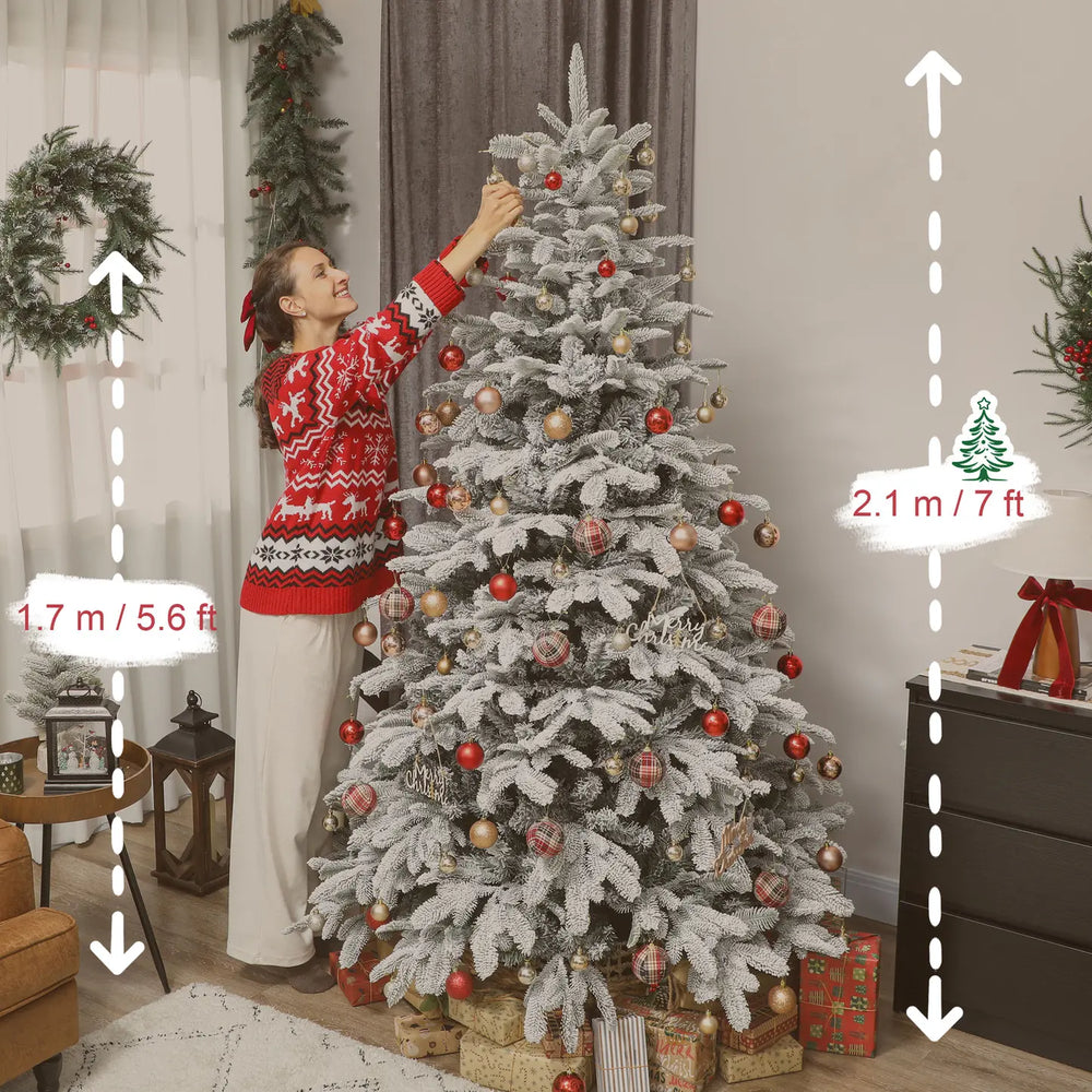 HOMCOM 7 ft Artificial Flocked Christmas Tree with 1867 Branches, Hinged Xmas Tree with Foldable Metal Stand, Easy Assembly for Home Office Decor