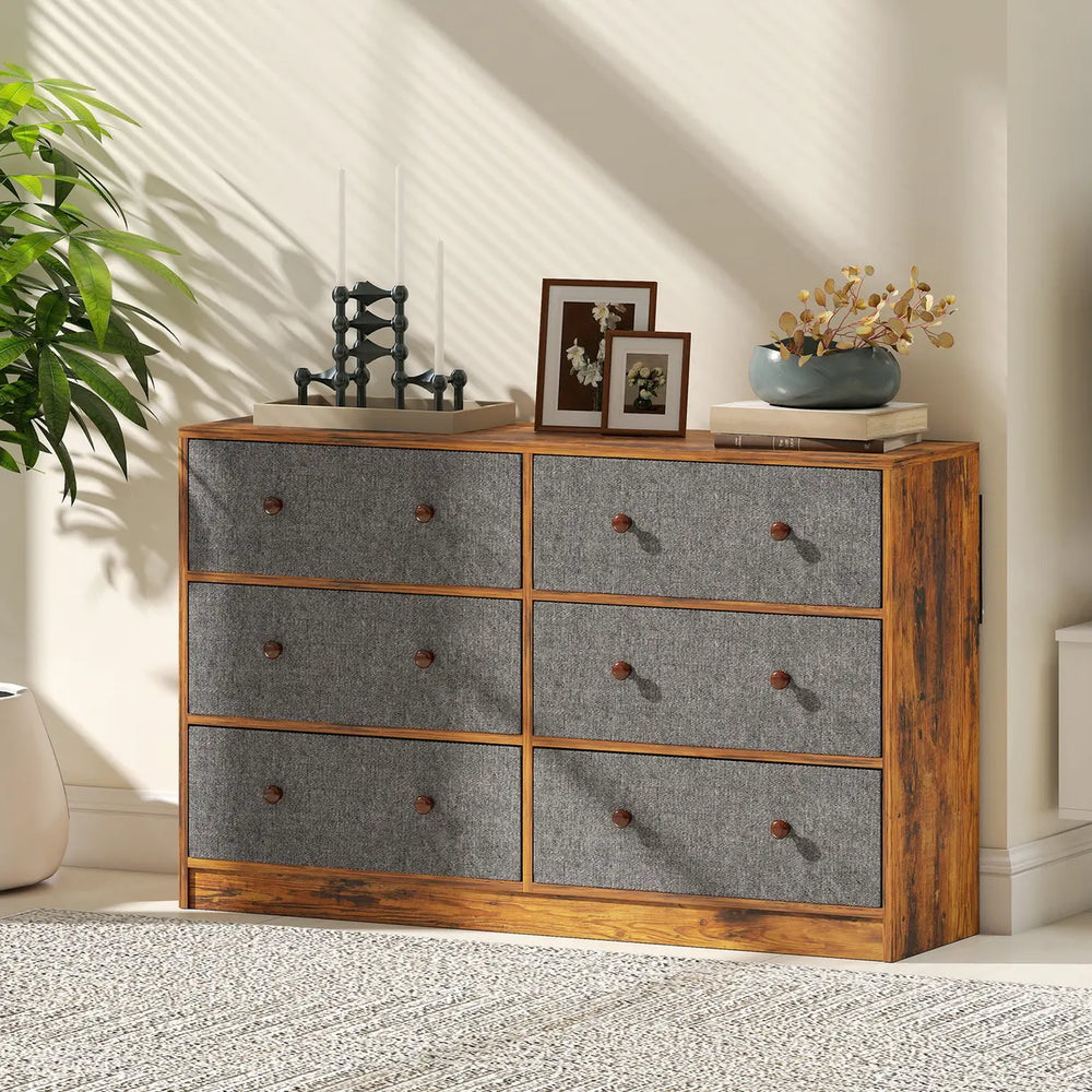HOMCOM Chest of Drawers, Dresser with 6 Fabric Drawers - Grey and Rustic Brown