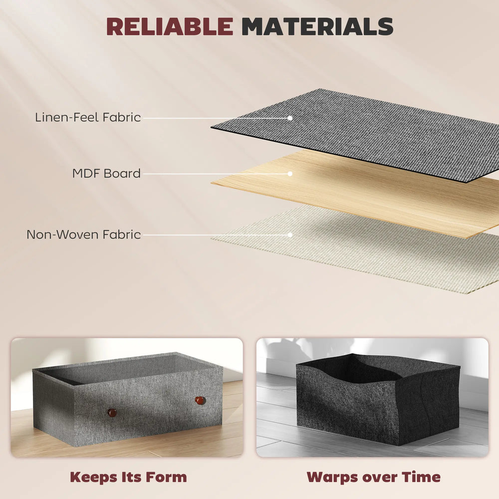 - Foldable drawers with handles: Each drawer is fully removable and folds flat in seconds, great for compact storage. Dual handles make pulling out the fabric drawers smooth and effortless every time